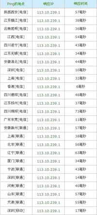 香港新世界机房 测试IP:113.10.239.1  113.10.188.1  183.90.185.200